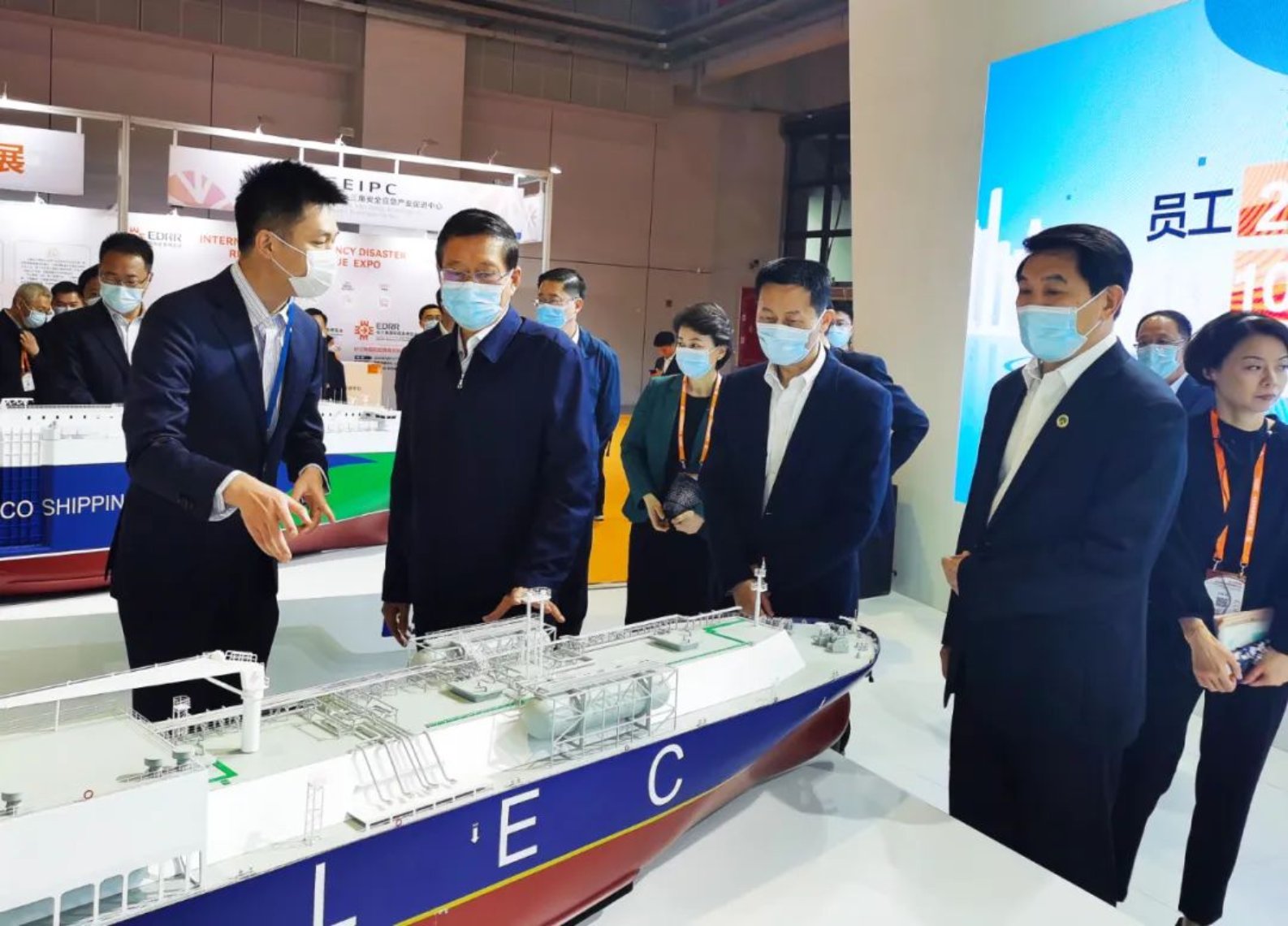 ▲應(yīng)急部宋元明副部長、上海市常務(wù)副市長吳清、三省一市應(yīng)急廳局長、合肥市市長、應(yīng)急部司局級領(lǐng)導(dǎo)、部分外省市應(yīng)急廳副廳長等一行領(lǐng)導(dǎo)現(xiàn)場蒞臨中國船舶集團(tuán)展位參觀