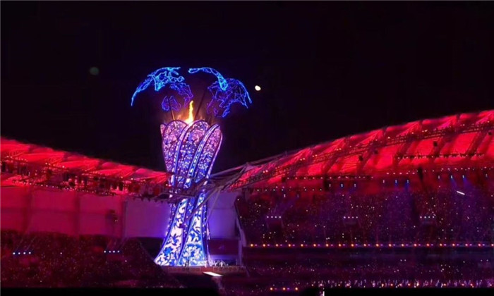 開幕式上最激動(dòng)人心、最富有創(chuàng)意的地方就是最后點(diǎn)燃火炬的那一刻,七條火龍(飄帶)盤旋而上最終點(diǎn)燃圣火,世人為之驚嘆。
