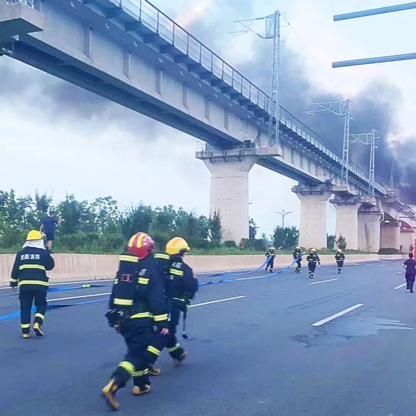 6月12日晚19時,一輛汽油罐車在星谷大道上燃燒,武昌造船消防隊接到新洲區消防大隊的緊急出動命令,迅速趕赴現場。