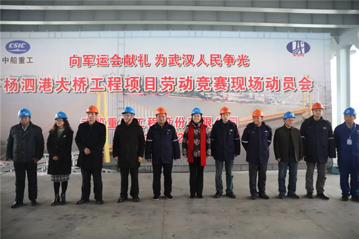 楊少稀在勞動(dòng)競(jìng)賽動(dòng)員時(shí)指出,楊泗港大橋是軍運(yùn)會(huì)重點(diǎn)工程,項(xiàng)目全體參建人員要以本次專(zhuān)項(xiàng)勞動(dòng)競(jìng)賽活動(dòng)為契機(jī),周密策劃,科學(xué)組織,全力沖刺,按照打造標(biāo)準(zhǔn)化、規(guī)范化、精細(xì)化的品質(zhì)工程進(jìn)行施工和管理,確保項(xiàng)目按競(jìng)賽方案要求節(jié)點(diǎn)完成夯實(shí)工作基礎(chǔ);要腳踏實(shí)地把關(guān)乎百年大計(jì)的工程做好,為武漢軍運(yùn)會(huì)和城市建設(shè)貢獻(xiàn)武船力量,向武漢人民交一份滿(mǎn)意的答卷。