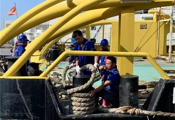 為確保船舶靠泊工作安全、有序進行,武船南通順融重工在移泊前做了一系列準備工作:一是對2號碼頭內檔進行了近一個月持續清淤挖泥的工作;二是派專人時時記錄潮汐變化,找準最佳移泊時間點;三是制定移泊方案,反復與交船隊、拖輪公司協商討論;四是對全體帶纜、解纜人員進行各崗位安全培訓、風險辨識防范及技能培訓,為移泊工作奠定堅實基礎。