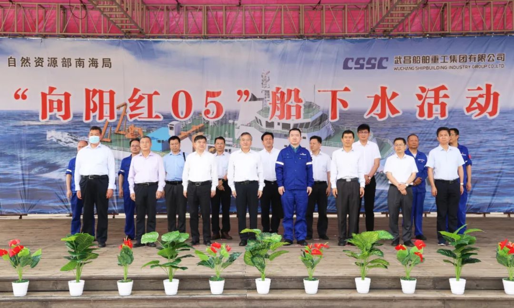 5月19日武昌造船下水滑道,彩旗招展,鑼鼓喧天,鞭炮齊鳴,9點58分,隨著船舶揭幕,擲瓶禮的完成,在眾人的觀禮中,中國船舶集團武昌造船為國家海洋局南海調查中心改造的3000噸級綜合科學考察船——“向陽紅05”船在雙柳廠區成功下水!