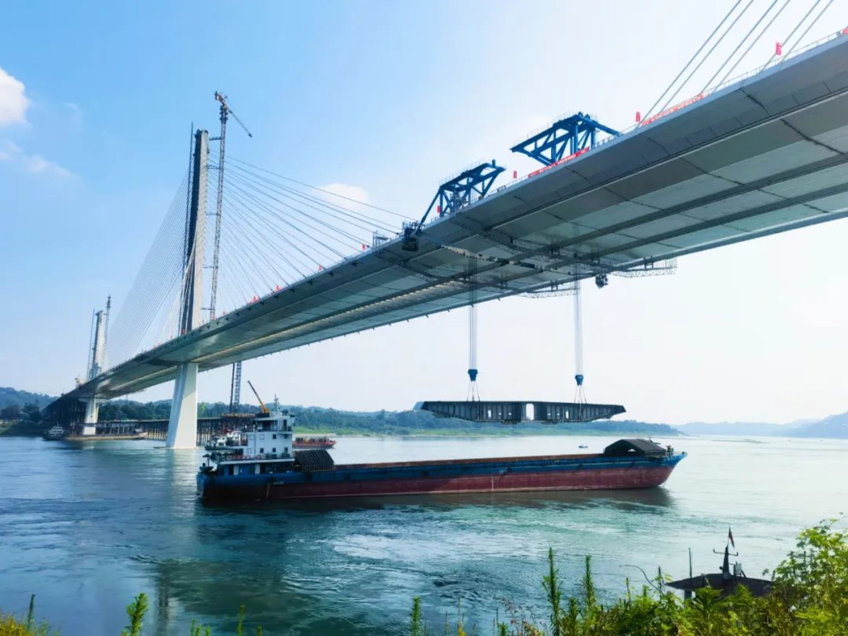 大橋合龍后,將進入后續橋面附屬結構施工,預計在今年底建成通車,通車后,將極大提高瀘州市過江通行效率,為城市“一體兩翼”發展,建設區域中心城市助力。