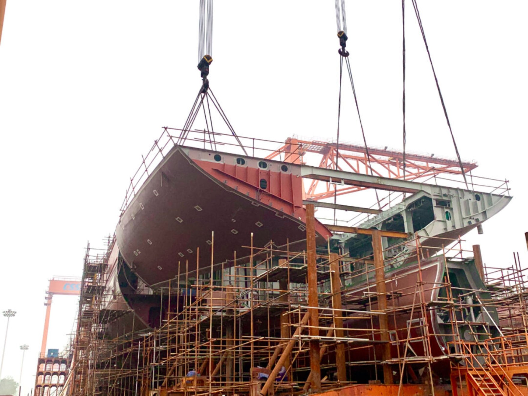12月18日,由中國船舶集團武昌造船承建的希臘1100TEU集裝箱船1號船 順利完成上船臺節(jié)點!
