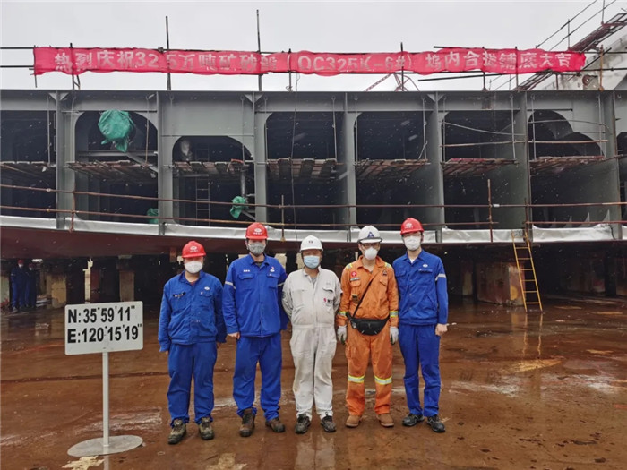北船重工項目部精心組織,精密部署,周密協(xié)調(diào),精益施工,抓主線,理流程,合理編排計劃,對重點項目進行重點編排施工計劃,合理規(guī)避交叉作業(yè)及避免返工施工。同時,管理人員下沉生產(chǎn)一線,在提前梳理、汲取32.5萬噸礦砂船1、2號船經(jīng)驗的基礎上,全面投入到現(xiàn)場施工及報驗工作,加大與船東船檢溝通協(xié)調(diào)力度,嚴把檢驗關口,提高報驗效率和頻率,最終實現(xiàn)了該船碼頭系泊調(diào)試有效周期僅為57天,刷新了該系列船舶最短碼頭施工周期。