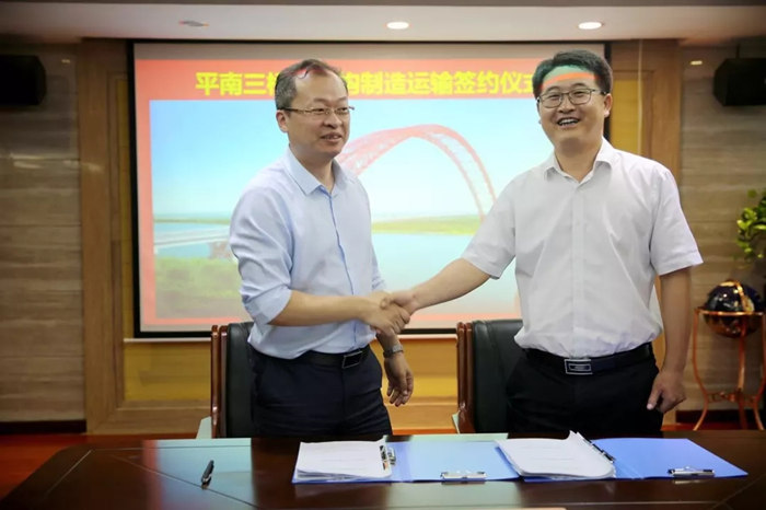 5月24日,武船重工股份與廣西路橋集團公司簽訂平南三橋鋼結構加工合同,武船重工董事長、黨委書記楊宏剛,常務副總經理李立明,副總經理蔡峰出席簽字儀式,總經理助理杜民代表公司在合同書上簽字。